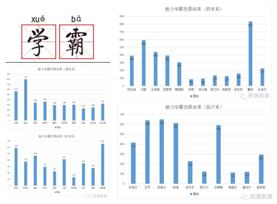 活动前期,各系学习部向15级全体学生广泛招贤纳士,征集成绩优异、全面发展的优秀学生,并收到了数份申请。经过推荐筛选,最终选出42名佼佼者在药学系官方微信公众平台“药善药美”进行线上微信投票。活动于5月2日正式开始,并持续进行至5月10日。本次活动获得师生的积极响应,对于活动期间出现的问题也在第一时间内得到了有效地解决,“魅力学霸”好评如潮。