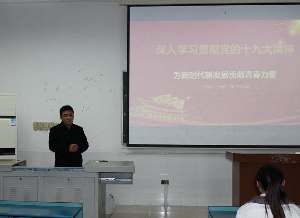 为提高团员青年政治素养,掀起深入学习宣传贯彻党的十九大精神热潮,12月12日中午,医疗系在第二教学楼104教室举办主题团课,深入学习党的十九大精神。团课由系团委书记班超主讲,全系100余名团员干部参加。