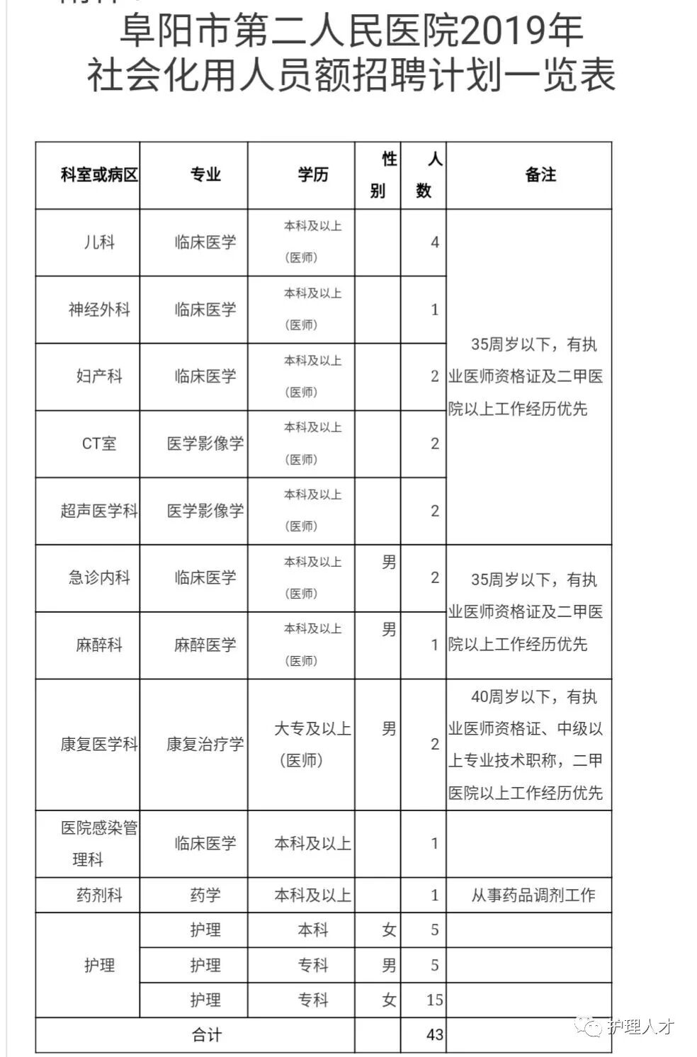 2019年度阜阳市第二人民医院自主招聘专科护理15+5(男)公告