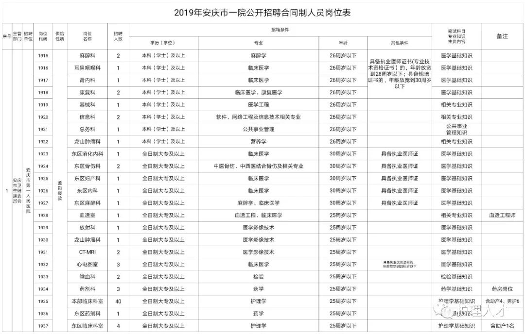 1.《2019年安庆市一院公开招聘合同制人员岗位表》