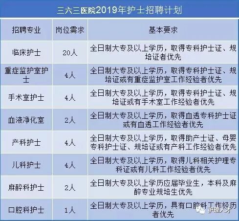 三六三医院2019年护士招聘计划、招聘条件